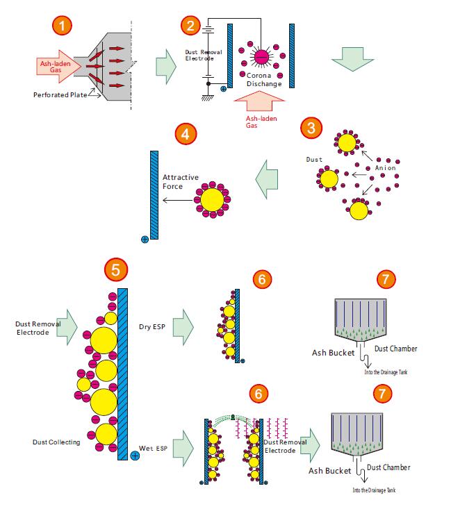 Avoiding the phenomenon of back corona and preventing from reentrainment of dust